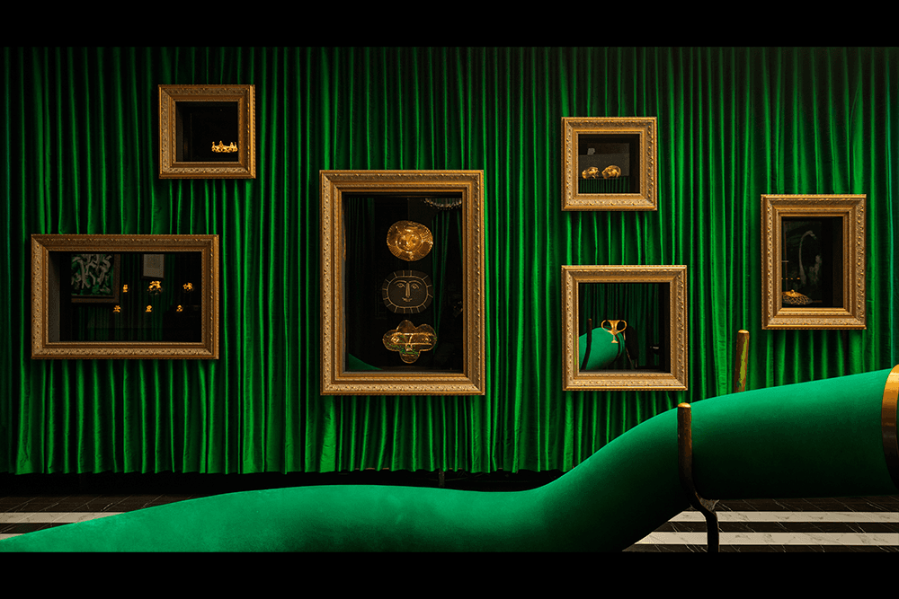 ... plush green curtains, lavish surroundings, original works by Picasso …